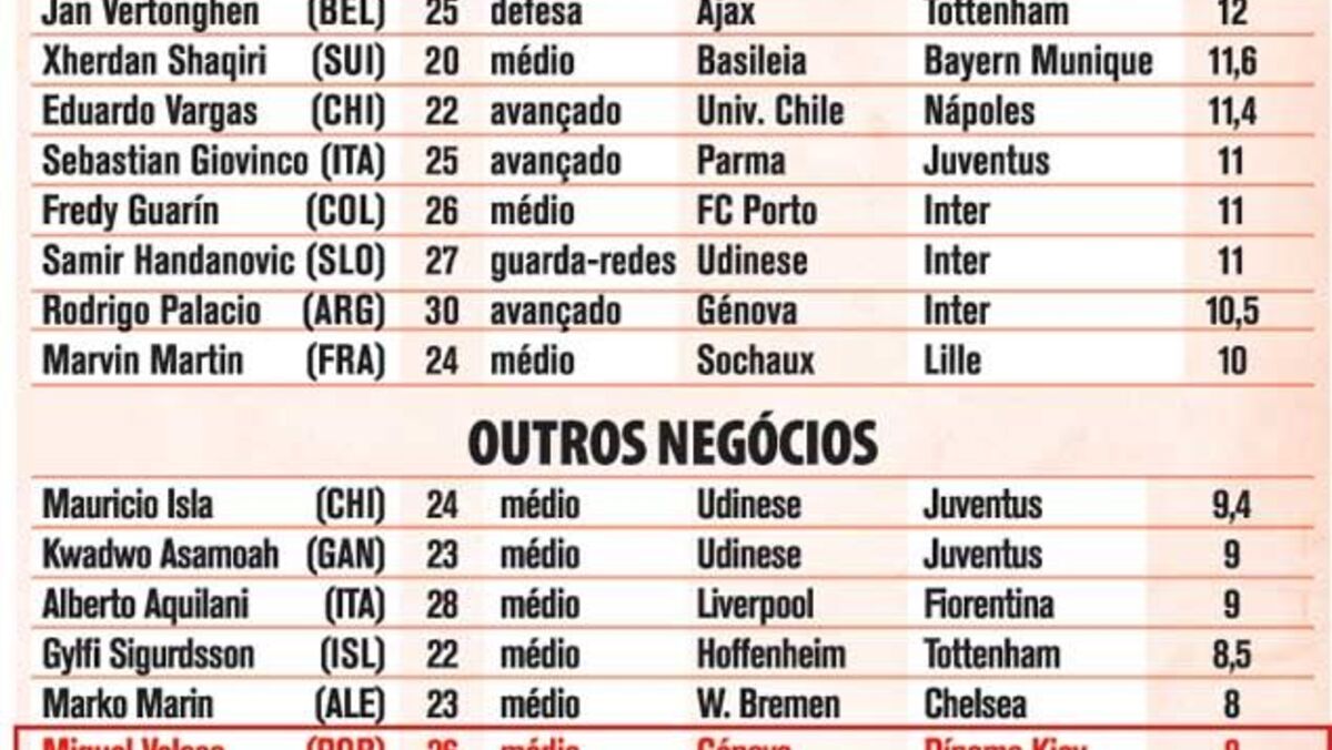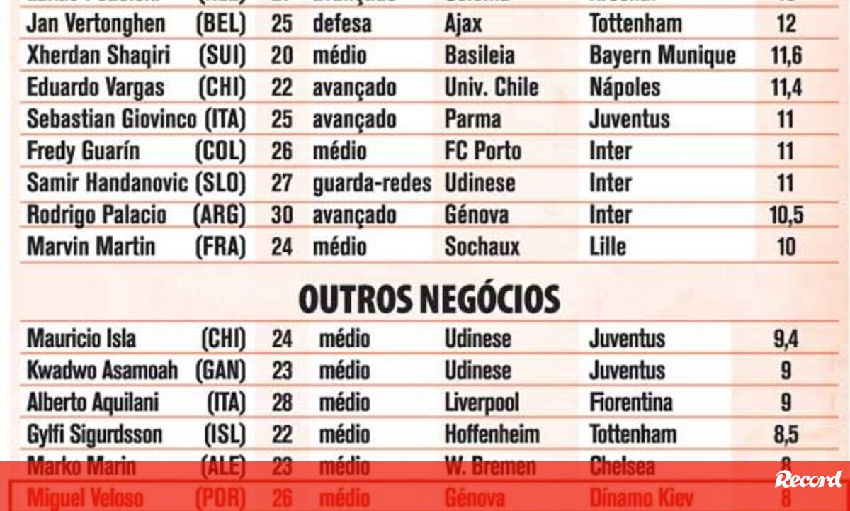 04 agosto 2012 - 11:34 Maiores transferências para 2012/13 ... × Funcionalidade exclusiva para assinantes Record Premium Assine para partilhar E usufrua de todas as vantagens de ser assinante Deixe o seu comentário Para poder guardar esta notícia deverá efectuar login. Caso não esteja registado no site do Record, efectue o seu registo gratuito. 04.08.2012 Maiores transferências para 2012/13 Deixe o seu comentário