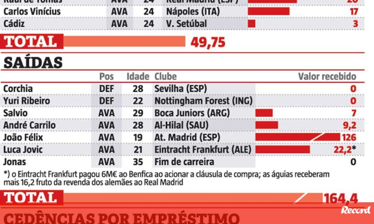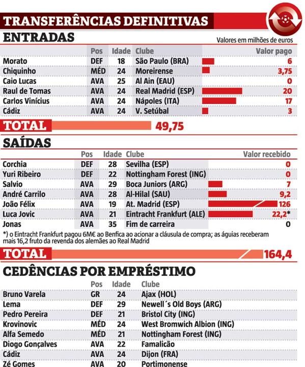 03 setembro 2019 - 13:36 Mercado de transferências do Benfica: entradas, saídas e os milhões negociados ... × Funcionalidade exclusiva para assinantes Record Premium Assine para partilhar E usufrua de todas as vantagens de ser assinante Deixe o seu comentário Para poder guardar esta notícia deverá efectuar login. Caso não esteja registado no site do Record, efectue o seu registo gratuito. 03.09.2019 Mercado de transferências do Benfica: entradas, saídas e os milhões negociados Deixe o seu comentário