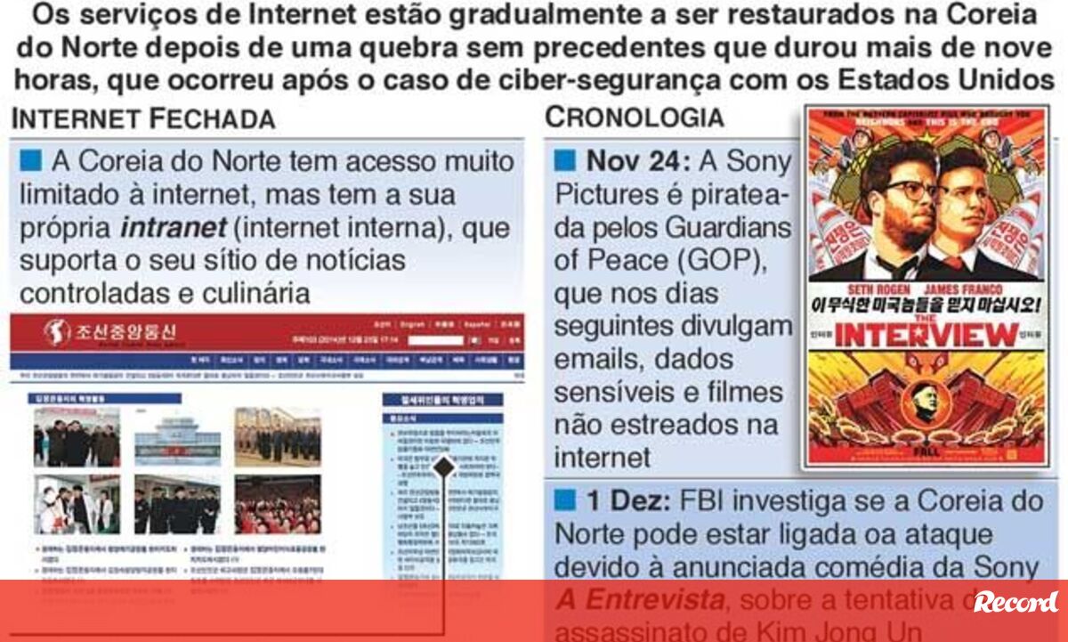 27 dezembro 2014 - 00:01 Mistério da falha de internet na Coreia do Norte ... × Funcionalidade exclusiva para assinantes Record Premium Assine para partilhar E usufrua de todas as vantagens de ser assinante Deixe o seu comentário Para poder guardar esta notícia deverá efectuar login. Caso não esteja registado no site do Record, efectue o seu registo gratuito. 27.12.2014 Mistério da falha de internet na Coreia do Norte Deixe o seu comentário