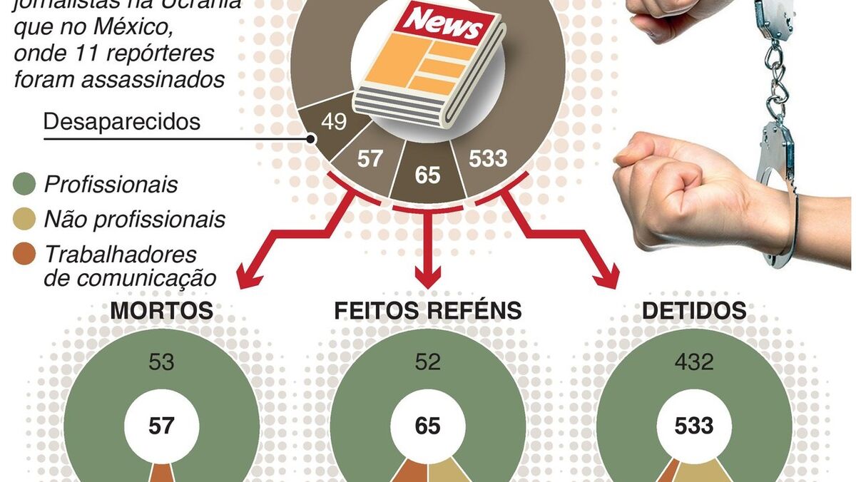 Um recorde de 533 jornalistas estão atualmente detidos em todo o mundo, segundo os Repórteres Sem Fronteiras. O número de jornalistas feitos reféns subiu para 65, com 57 dados como mortos.