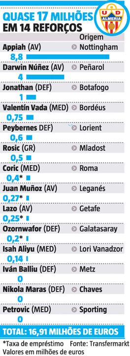 Os 17 milhões gastos em 14 reforços: Almería foi craque no mercado