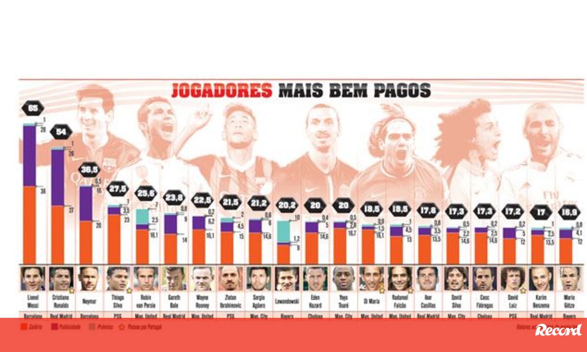 26 março 2015 - 09:05 Os jogadores mais bem pagos do Mundo ... × Funcionalidade exclusiva para assinantes Record Premium Assine para partilhar E usufrua de todas as vantagens de ser assinante Deixe o seu comentário Para poder guardar esta notícia deverá efectuar login. Caso não esteja registado no site do Record, efectue o seu registo gratuito. 26.03.2015 Os jogadores mais bem pagos do Mundo Deixe o seu comentário