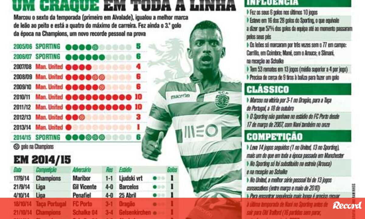 07 novembro 2014 - 09:21 Os números de Nani ... × Funcionalidade exclusiva para assinantes Record Premium Assine para partilhar E usufrua de todas as vantagens de ser assinante Deixe o seu comentário Para poder guardar esta notícia deverá efectuar login. Caso não esteja registado no site do Record, efectue o seu registo gratuito. 07.11.2014 Os números de Nani Deixe o seu comentário