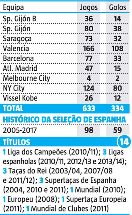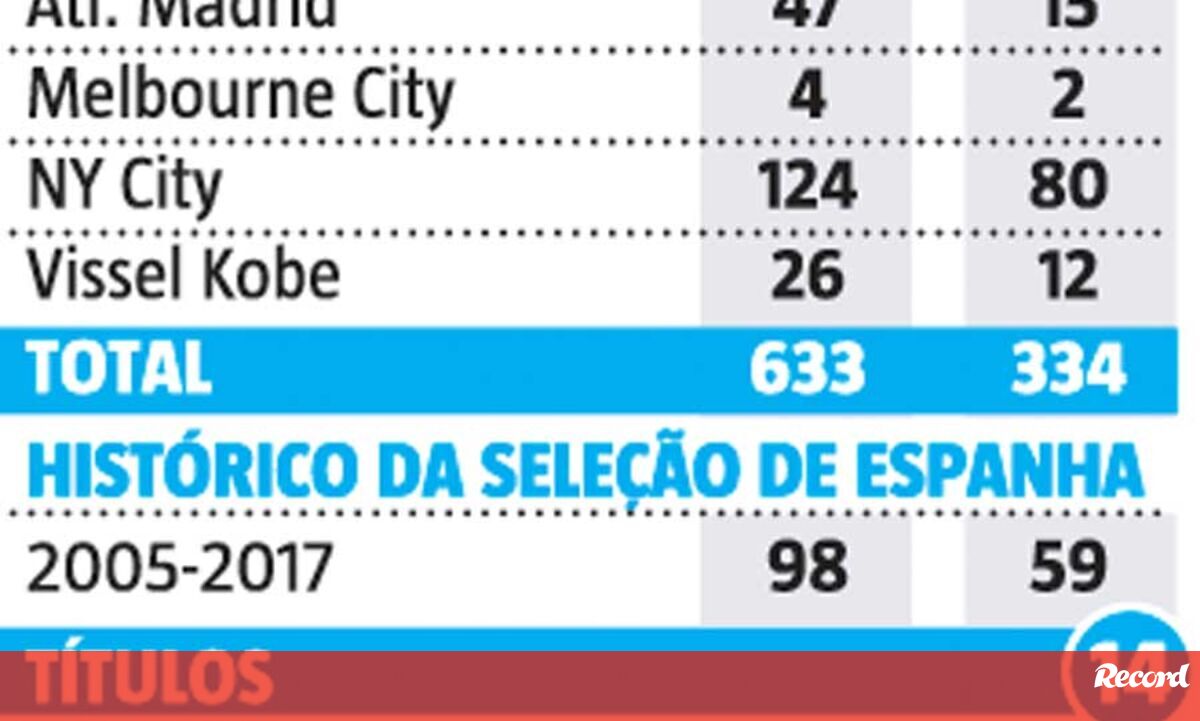 14 novembro 2019 - 15:17 Os números que contam a história de David Villa ... × Funcionalidade exclusiva para assinantes Record Premium Assine para partilhar E usufrua de todas as vantagens de ser assinante Deixe o seu comentário Para poder guardar esta notícia deverá efectuar login. Caso não esteja registado no site do Record, efectue o seu registo gratuito. 14.11.2019 Os números que contam a história de David Villa Deixe o seu comentário