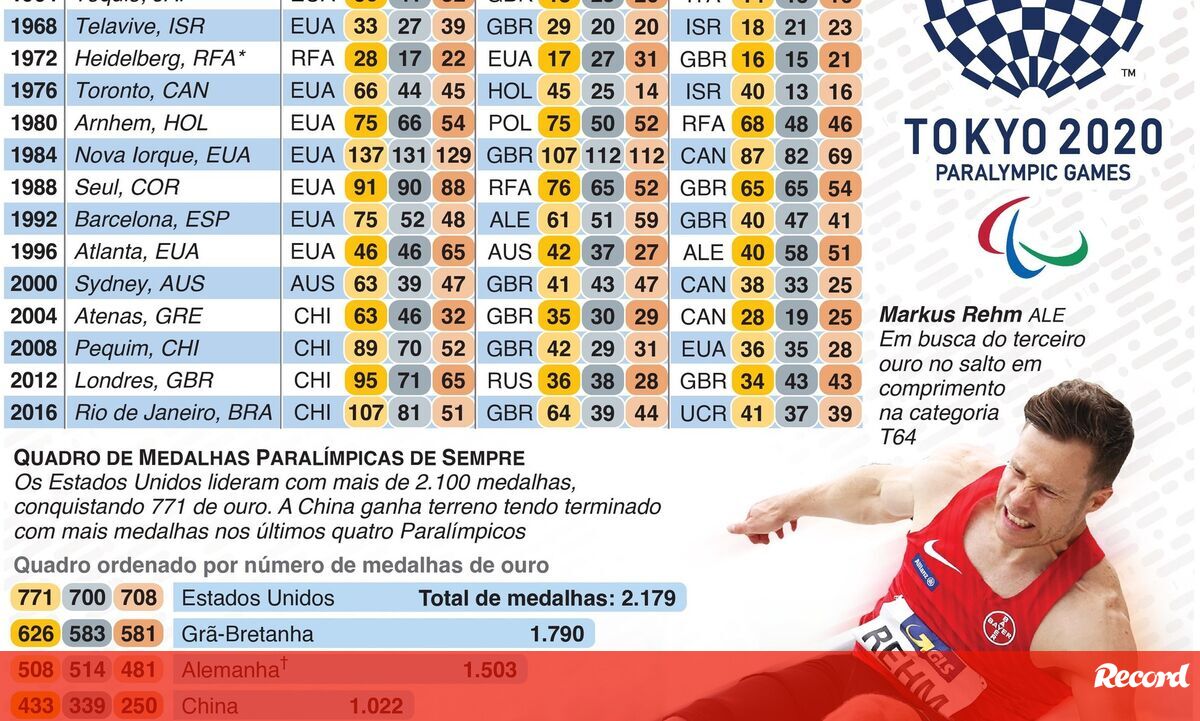 23 agosto 2021 - 12:35 Os países com mais medalhas em Jogos Paralímpicos ... × Funcionalidade exclusiva para assinantes Record Premium Assine para partilhar E usufrua de todas as vantagens de ser assinante Este conteúdo é exclusivo para assinantes Record Premium Assine Já Se já é assinante faça login Deixe o seu comentário Para poder guardar esta notícia deverá efectuar login. Caso não esteja registado no site do Record, efectue o seu registo gratuito. 23.08.2021 Os países com mais medalhas em Jogos Paralímpicos Deixe o seu comentário