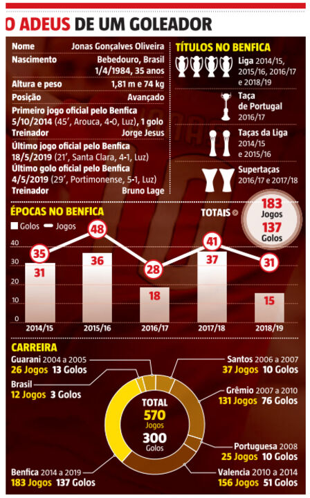 Jonas encerrou recentemente a carreira de futebolista e, antes de voltar ao Brasil, concedeu uma entrevista a Record. Motivo também para o nosso jornal recordar os principais dados da carreira do Pistolas.