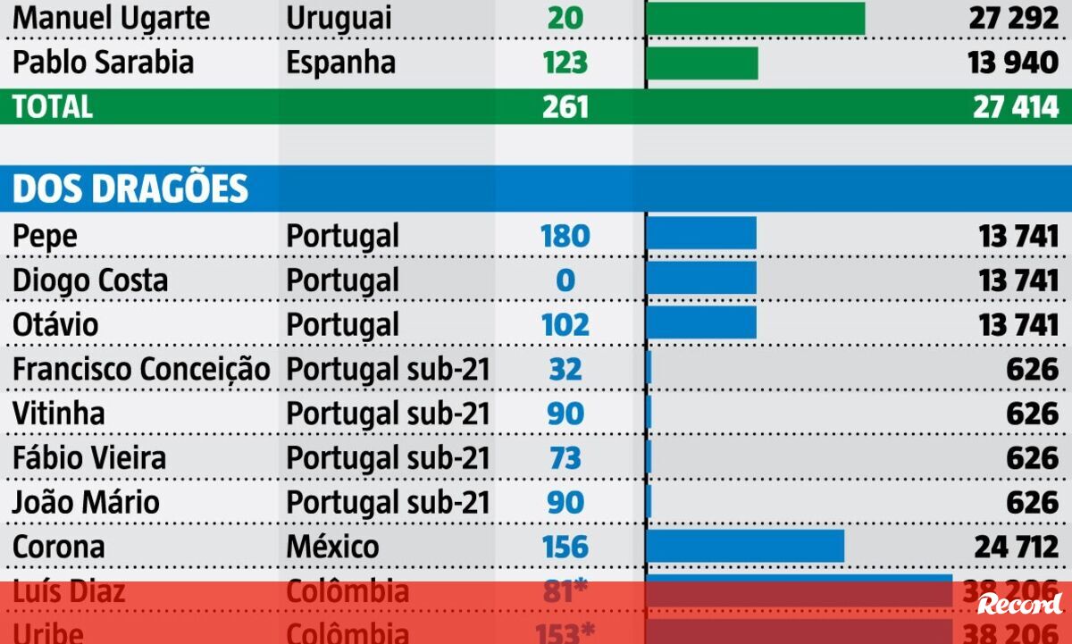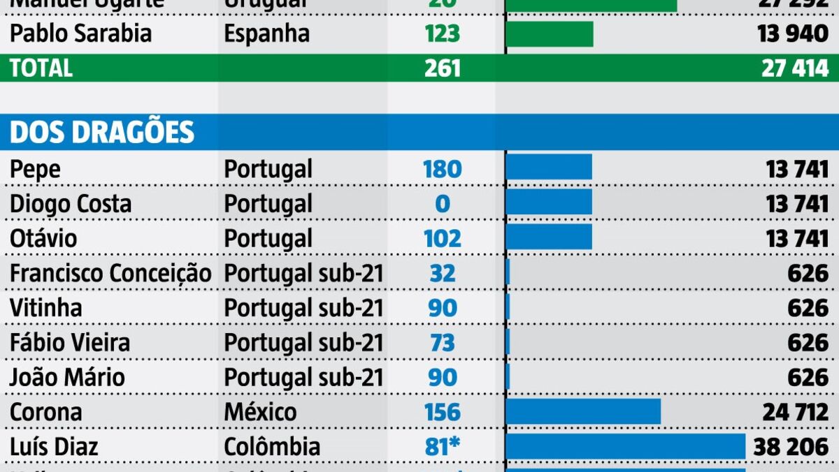 A diferença é grande na quantidade de jogadores e traduz-se na... quantidade de minutos e quilómetros acumulados pelos jogadores de Sporting e FC Porto nesta paragem para as seleções. Record fez as contas e apresenta-lhe os números do que jogaram e viajaram os protagonistas do clássico desta noite em Alvalade