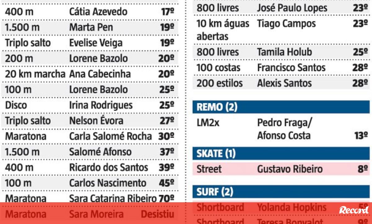 Os resultados de todos os portugueses em Tóquio'2020