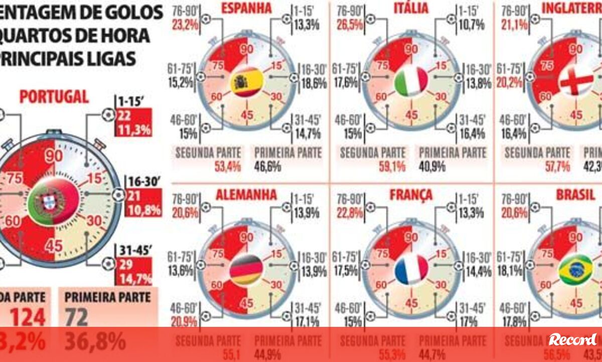 22 novembro 2012 - 09:42 Percentagem de golos por quartos de hora nas principais ligas ... × Funcionalidade exclusiva para assinantes Record Premium Assine para partilhar E usufrua de todas as vantagens de ser assinante Deixe o seu comentário Para poder guardar esta notícia deverá efectuar login. Caso não esteja registado no site do Record, efectue o seu registo gratuito. 22.11.2012 Percentagem de golos por quartos de hora nas principais ligas Deixe o seu comentário