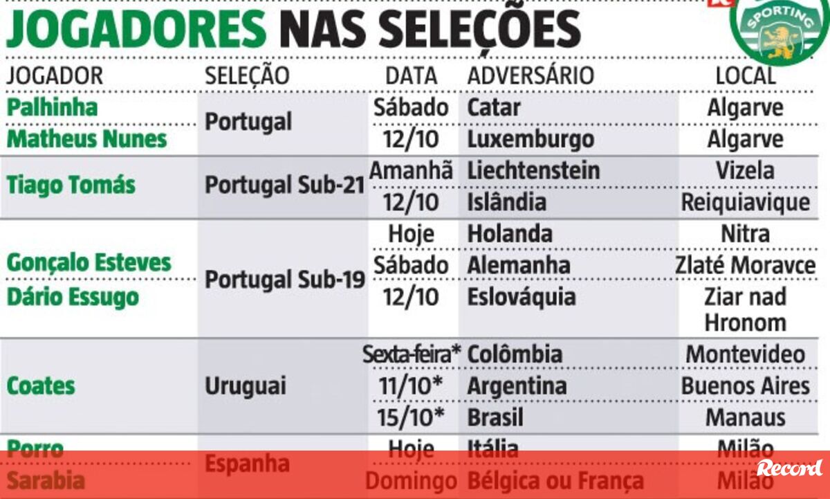 Por onde andam os jogadores do Sporting nas seleções