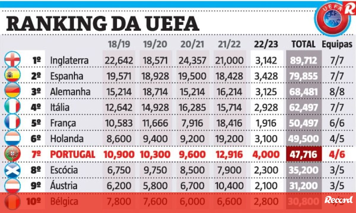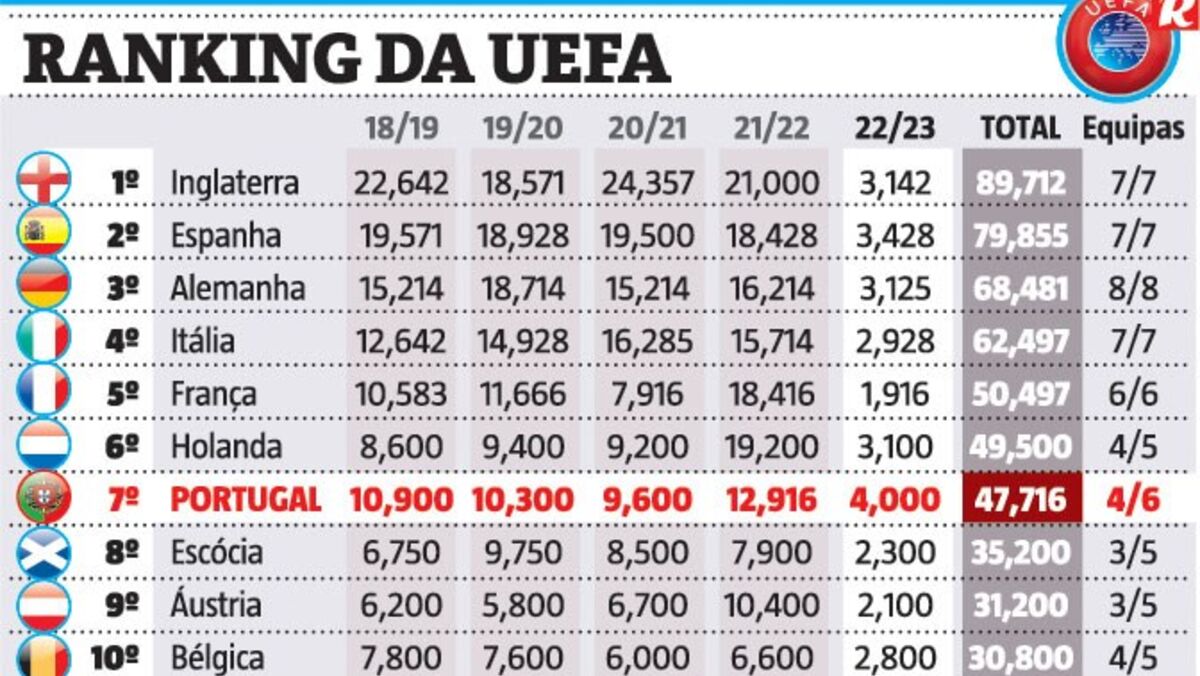 Portugal é o país com melhor desempenho esta época no top-10: assim está o ranking da UEFA