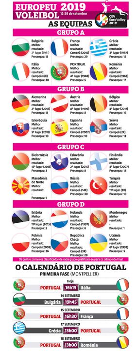 Portugal no Europeu de voleibol: o calendário e os adversários da Seleção