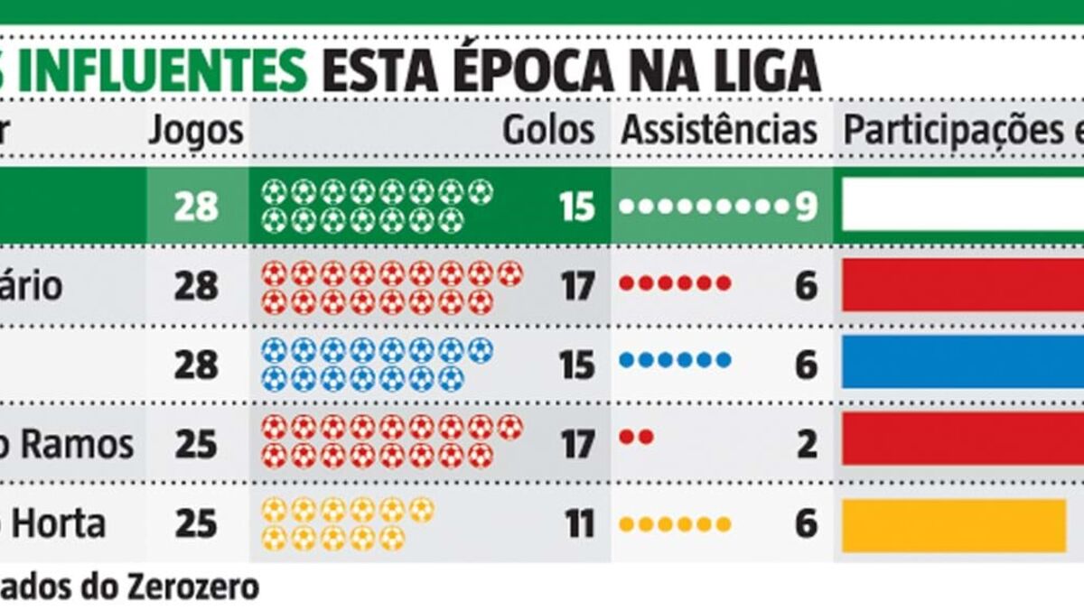 De volta ao trio ofensivo, Pote foi peça-chave na vitória do Sporting, num assalto ao castelo que serve de mote para o final de temporada. Ao abrir o marcador num remate espontâneo, o criativo de 24 anos alcançou a marca dos 20 golos em todas as provas, mas certo é que a sua influência vai além disso. A viver a melhor época em Alvalade, o camisola 28 fixou-se como o jogador com maior influência em golos na atual Liga.