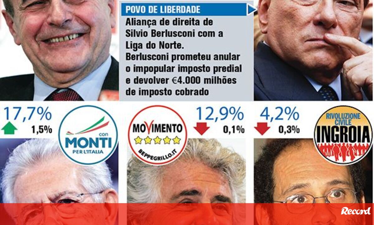 05 fevereiro 2013 - 11:43 Quem é quem nas eleições italianas ... × Funcionalidade exclusiva para assinantes Record Premium Assine para partilhar E usufrua de todas as vantagens de ser assinante Deixe o seu comentário Para poder guardar esta notícia deverá efectuar login. Caso não esteja registado no site do Record, efectue o seu registo gratuito. 05.02.2013 Quem é quem nas eleições italianas Deixe o seu comentário