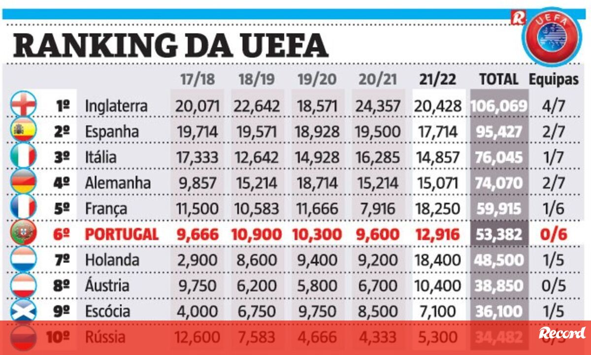 Ranking da UEFA: Portugal de olho no Feyenoord-Marselha... por uma razão
