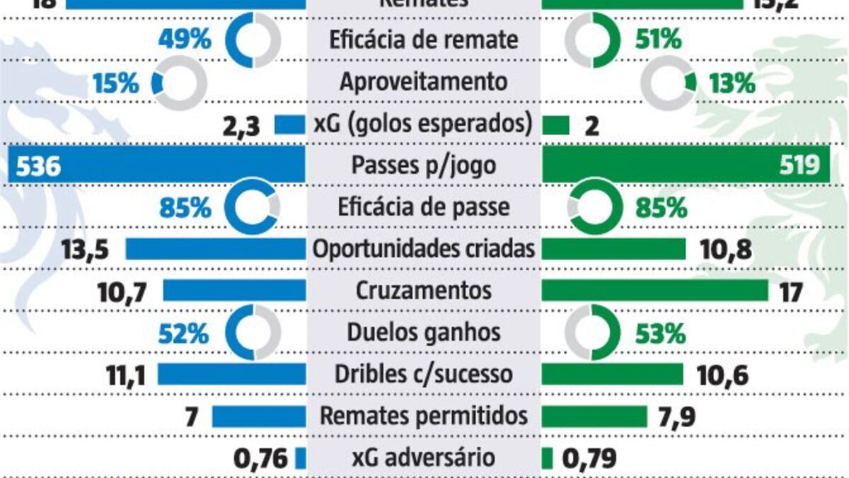 FC Porto e Sporting estão a seis pontos de distância na classificação, mas será que em termos estatísticos apresentam grandes diferenças? É notório que os dragões denotam um ascendente em relação aos leões, o que também se compreende pelo lugar que ocupam.