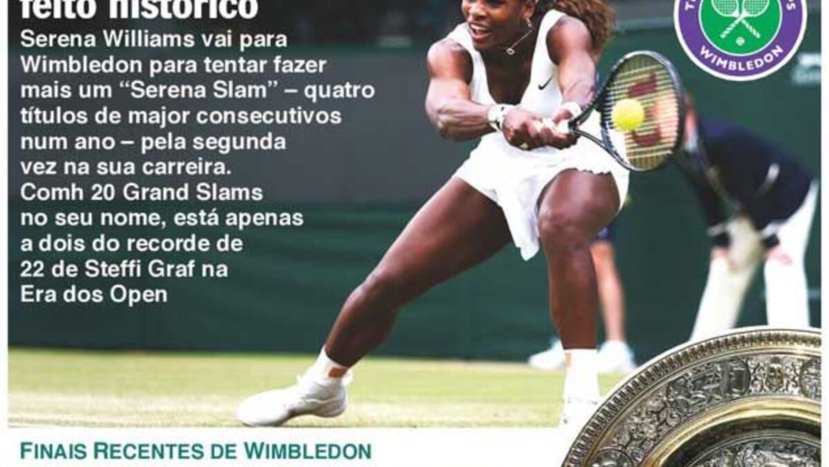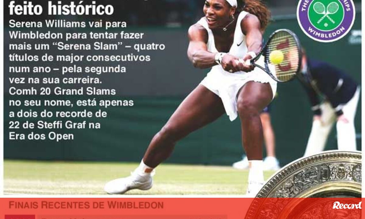 22 junho 2015 - 16:32 Serena procura novo feito histórico em Wimbledon ... × Funcionalidade exclusiva para assinantes Record Premium Assine para partilhar E usufrua de todas as vantagens de ser assinante Deixe o seu comentário Para poder guardar esta notícia deverá efectuar login. Caso não esteja registado no site do Record, efectue o seu registo gratuito. 22.06.2015 Serena procura novo feito histórico em Wimbledon Deixe o seu comentário