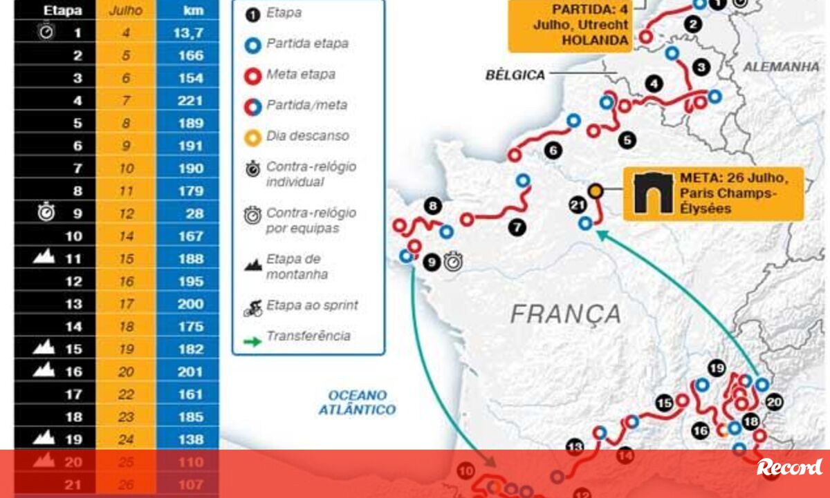 Infografia interativa que funciona como guia para esta edição da Volta a França...