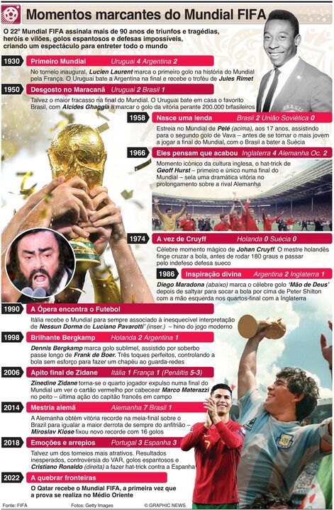 Triunfos e tragédias, heróis e vilões: momentos marcantes dos Mundiais FIFA