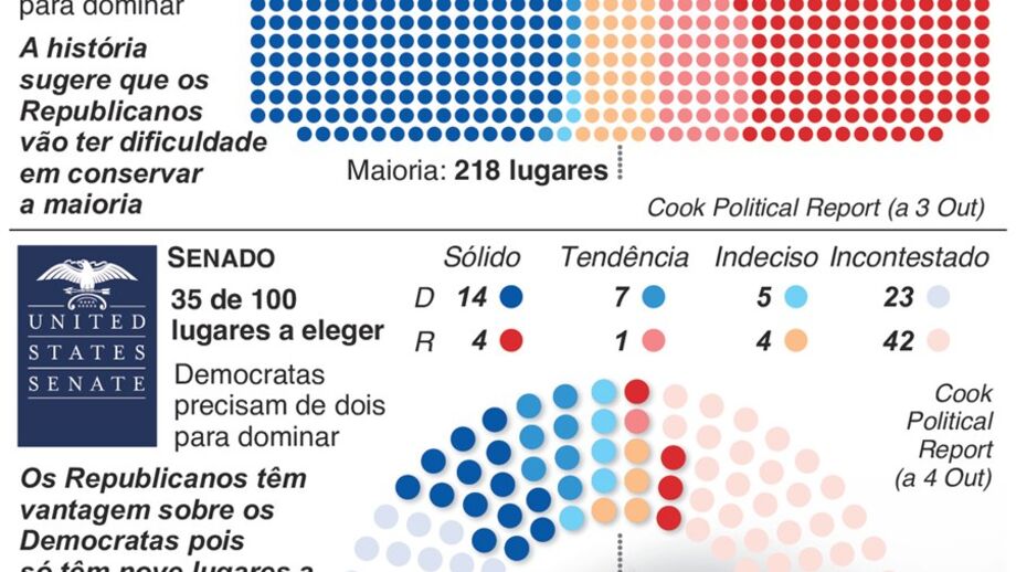 Os norte-americanos vão às urnas a 6 de novembro para decidir que partido controla as duas câmaras do Congresso e tem assim poder para fiscalizar o Presidente Donald Trump e a sua Administração.