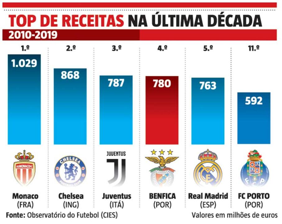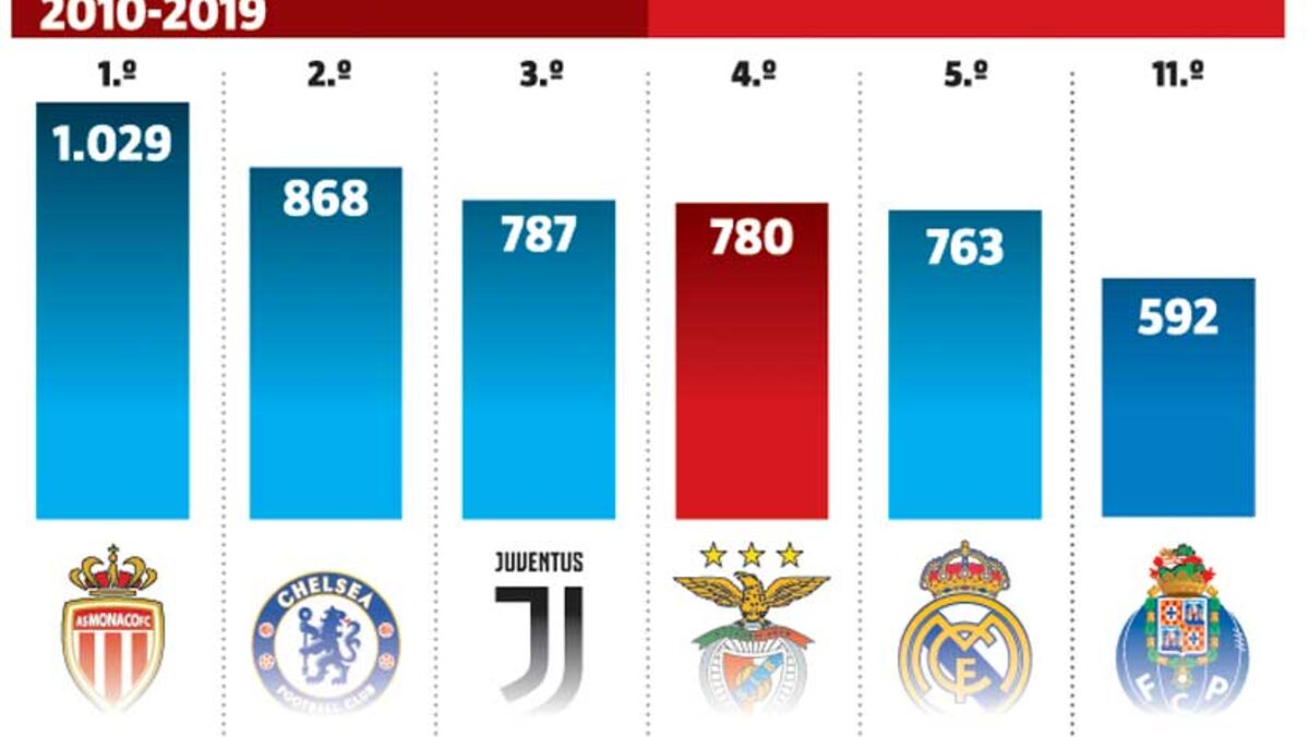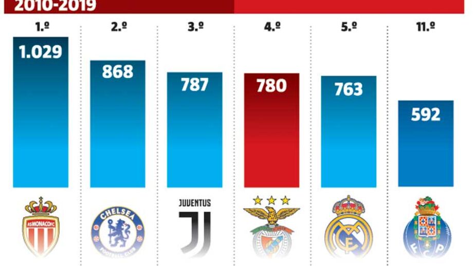 Venda de jogadores coloca Benfica no top 5 das receitas