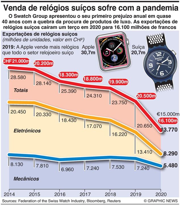30 janeiro 2021 - 11:28 Venda de relógios suíços sofre com a pandemia: Swatch apresenta prejuízos pela 1.ª vez em 40 anos ... × Funcionalidade exclusiva para assinantes Record Premium Assine para partilhar E usufrua de todas as vantagens de ser assinante Deixe o seu comentário Para poder guardar esta notícia deverá efectuar login. Caso não esteja registado no site do Record, efectue o seu registo gratuito. 30.01.2021 Venda de relógios suíços sofre com a pandemia: Swatch apresenta prejuízos pela 1.ª vez em 40 anos Deixe o seu comentário