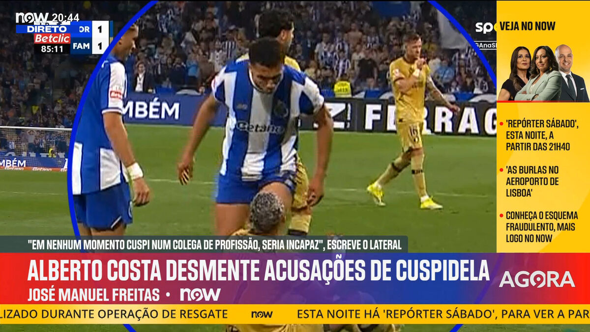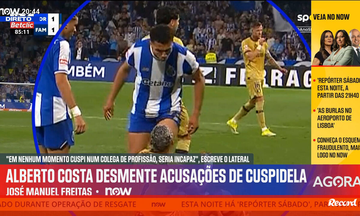 O FC Porto-Famalicão (2-2) fica marcado por uma acusação de Sorriso de que Alberto Costa lhe cuspiu, ato que o jogador portista negou publicamente. No 'Record na Hora' o subdiretor do Record Vítor Pinto, o chefe de redação Luís Pedro Sousa e o comentador José Manuel Freitas analisam todas as imagens do momento polémico.