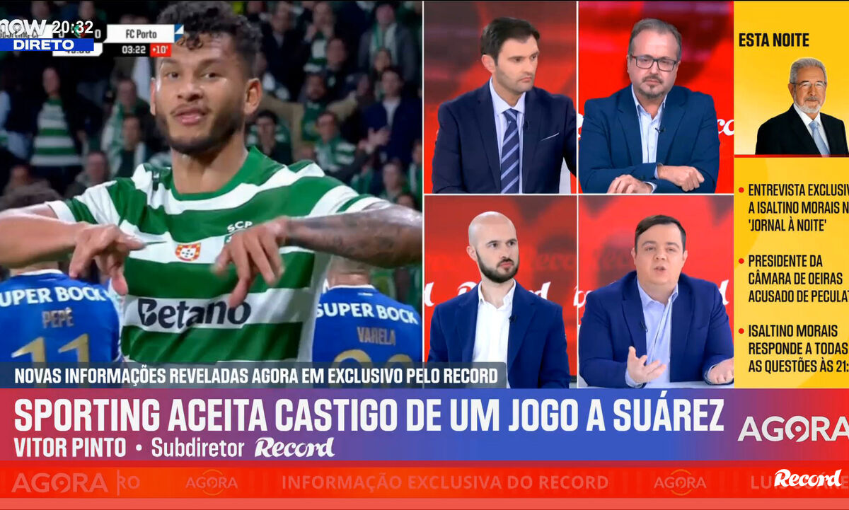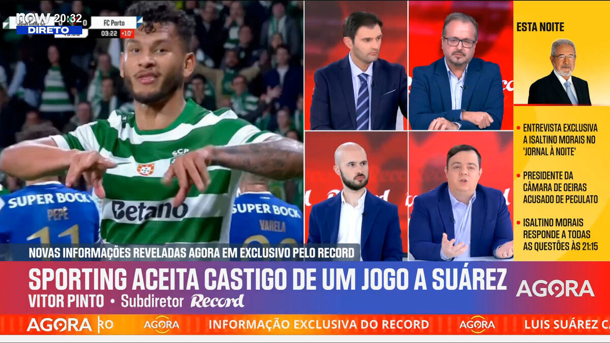 Sporting não deve recorrer do castigo de um jogo a Suárez: notícia revelada em direto no programa 'Record na Hora'