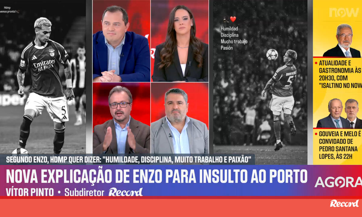 Horas depois de publicar duas 'stories' no Instagram sobre o clássico a meio da semana com o FC Porto, para a Taça de Portugal, Enzo Barrenechea recorreu novamente às redes sociais para justificar o que tinha escrito no texto da primeira fotografia partilhada. "HDMP. Vemo-nos em breve", escreveu o centro-campista argentino. Em espanhol, a abreviação HDMP significa "Hijos De Mil P... [Filhos de Mil P..., em português]". Contudo, Enzo Barrenechea justificou o texto de uma outra forma: "Humildade, Disciplina, Muito trabalho e Paixão". Vítor Pinto, subdiretor de Record, analisa publicações do médio do Benfica nas redes sociais.