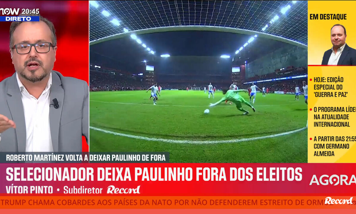 Vítor Pinto, subdiretor de Record, analisa convocatória de Roberto Martínez para os jogos particulares com México e Estados Unidos. Declarações no programa 'Record na Hora' no Now.