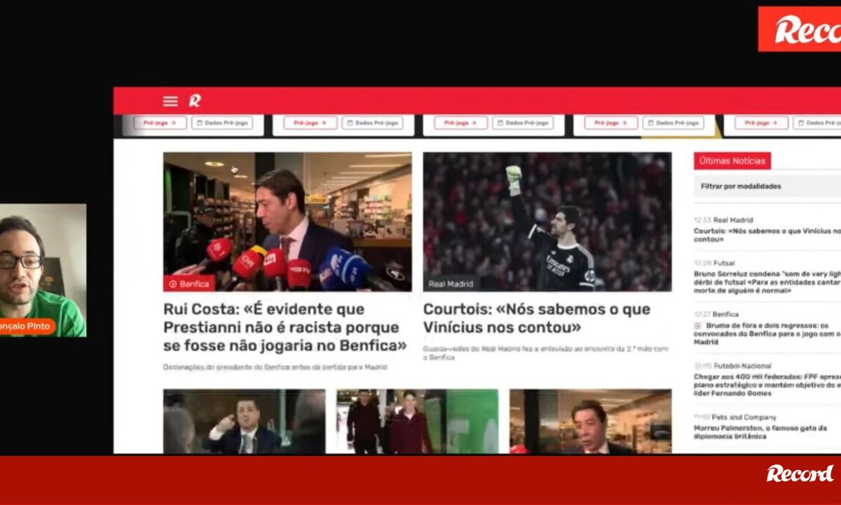 12:59 10 Minutos Record: Rui Costa sai em defesa de Prestianni e Pote baralha onze do Sporting A análise aos destaques do dia ... × Funcionalidade exclusiva para assinantes Record Premium Assine para partilhar E usufrua de todas as vantagens de ser assinante Pedro Gonçalo Pinto analisa os destaques desta terça-feira. Deixe o seu comentário Para poder guardar esta notícia deverá efectuar login. Caso não esteja registado no site do Record, efectue o seu registo gratuito. 12:59 10 Minutos Record: Rui Costa sai em defesa de Prestianni e Pote baralha onze do Sporting Deixe o seu comentário