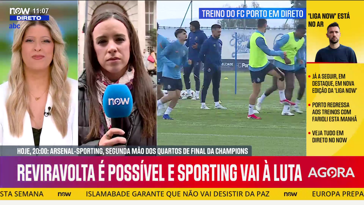 O Sporting procura uma reviravolta histórica frente ao Arsenal nos quartos de final da Liga dos Campeões. Andreia Candeias, enviada especial Record/NOW a Londres, conta-lhe qual o estado de espírito do grupo liderado por Rui Borges, as novidades esperadas no onze dos leões para esta noite e muito mais. Intervenção em direto para o programa 'Liga NOW'.
