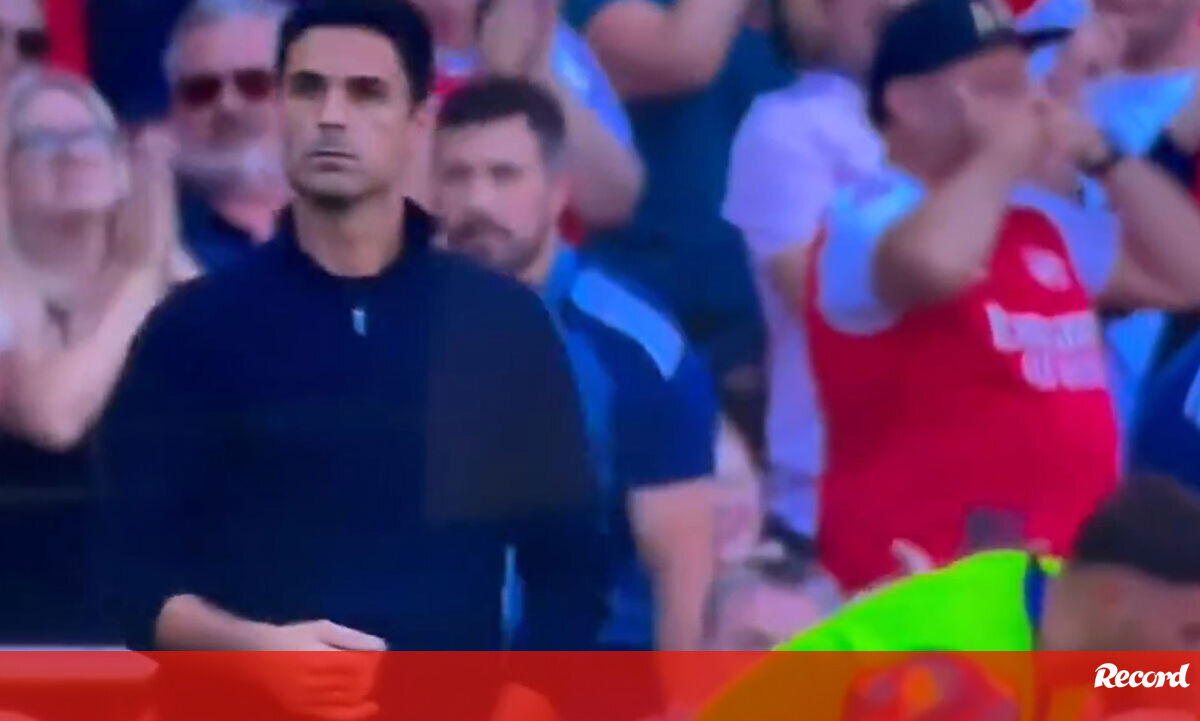 A máscara de Gyökeres já chegou ao Emirates: sueco festejou e viu adeptos do Arsenal imitarem gesto nas bancadas