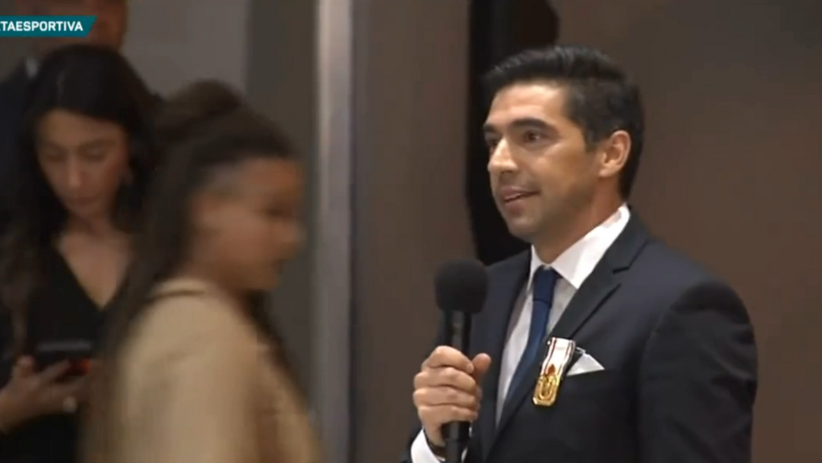 Abel Ferreira recebeu esta quarta-feira a Medalha de Mérito Desportivo da cidade de São Paulo e agradeceu às várias pessoas que foram importante para que atingisse o êxito no Brasil, ao serviço do Palmeiras, destacando a família. [Imagens: Gazeta Esportiva]
