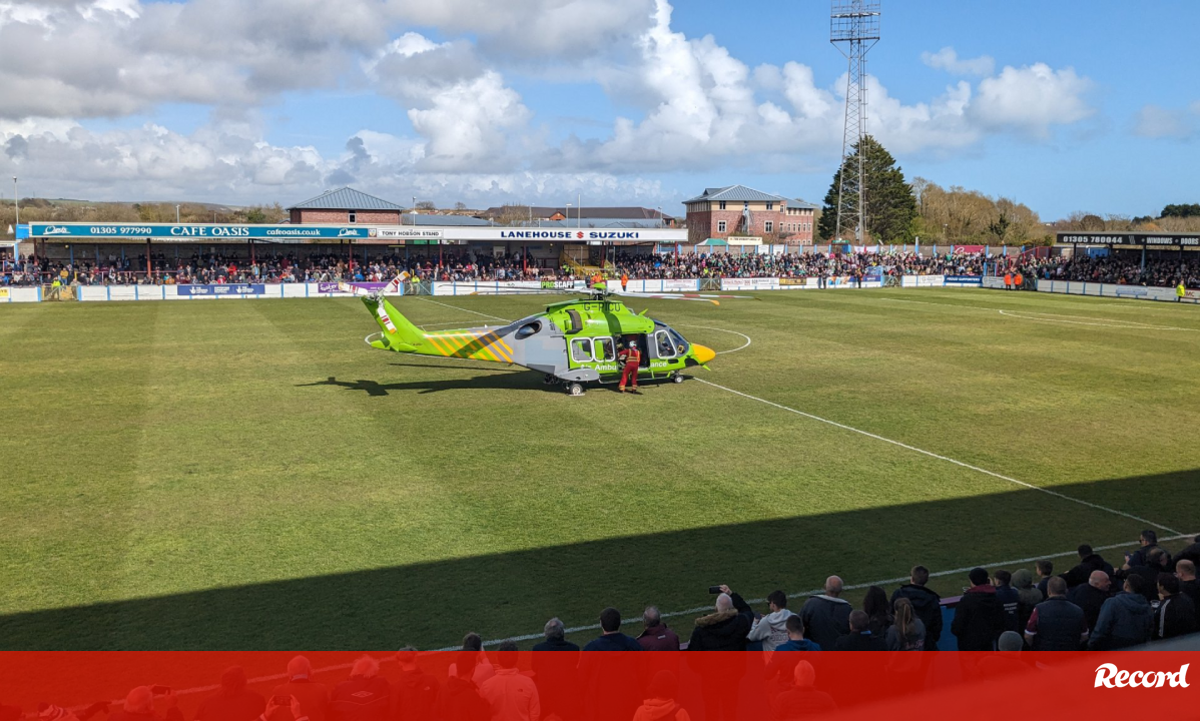 Corria o minuto 75 do encontro entre o Weymouth e o Yeovil Town, a contar para a 43.ª jornada da Vanarama National League (equivalente à 5.ª divisão em Inglaterra), quando o árbitro decidiu interromper a partida e dar ordem de saída aos jogadores para que fosse prestada assistência médica a um adepto que se sentiu mal nas bancadas do recinto do Weymouth. O relvado teve de ser desimpedido para que pudesse aterrar o helicóptero de assistência médica, de modo a transportar o adepto o mais rápido possível para uma unidade hospitalar próxima sem perder tempo com o trânsito local. [Imagem e Vídeo: Almost A Pro Pilot/X]