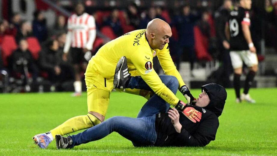Os minutos finais do PSV-Sevilha ficou marcado por uma cena lamentável. Um adeptos dos holandeses entrou no relvado para agredir o guarda-redes da formação espanhola. Marko Dmitrovic ripostou e ofereceu resistência ao 'ultra', travado pelos outros futebolistas nas quatro linhas.
