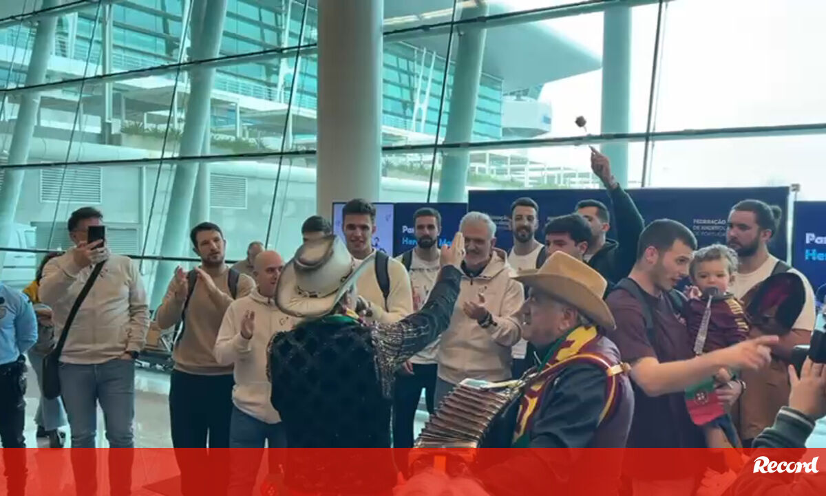 Depois do histórico 5.º lugar no Europeu, Portugal foi recebido ao som dos “Amigos da Sobreposta”, grupo musical de Braga cuja banda sonora foi adotada pelo balneário
