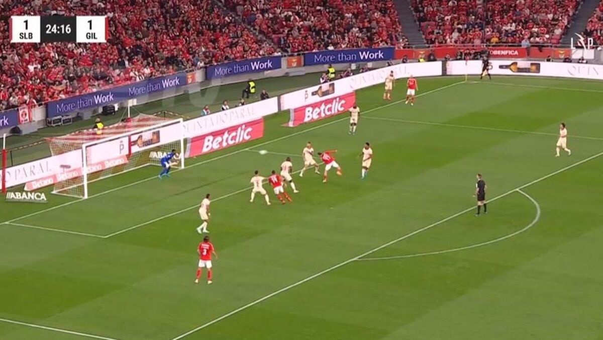 Aos 25' do Benfica-Gil Vicente, Aktürkoglu fez o 2-1 para os encarnados após centro de Aursnes, numa jogada que começou com abertura de Tomás Araújo.
