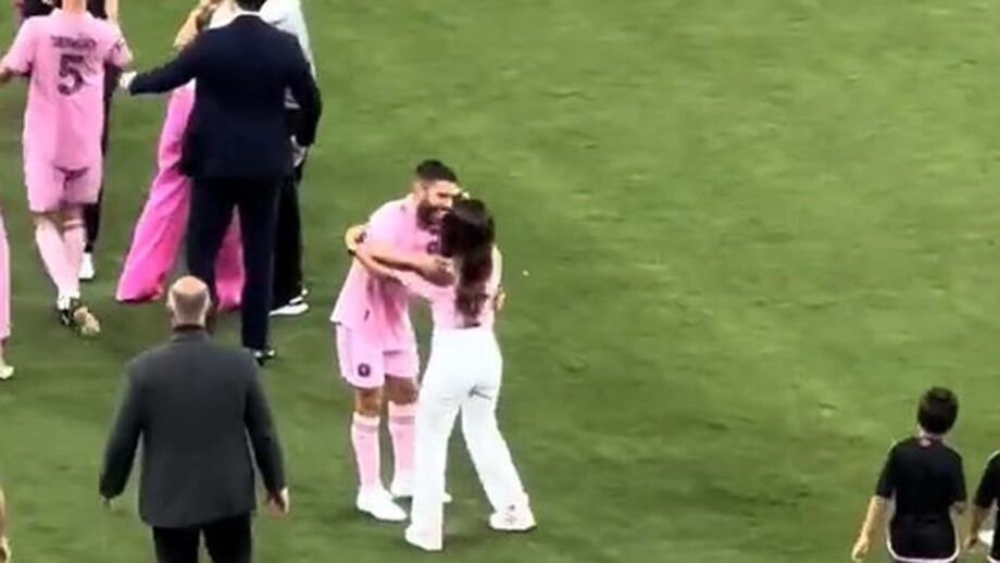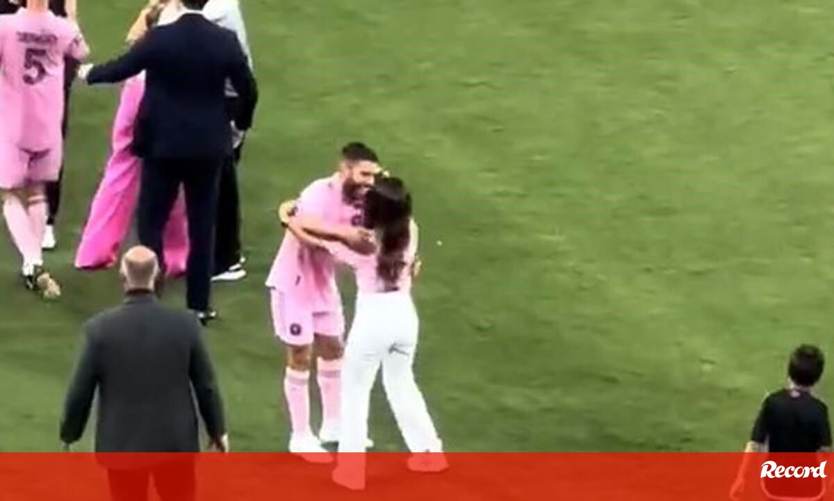 Antonella Roccuzzo foi protagonista de um momento caricato, no final do jogo do Inter Miami com o Cincinnati na quinta-feira. A mulher de Lionel Messi dirigiu-se ao relvado para celebrar a vitória da formação de Miami com o marido, mas... confundiu-o com Jordi Alba e quase beijou o espanhol. [Vídeo: Twitter DAM]