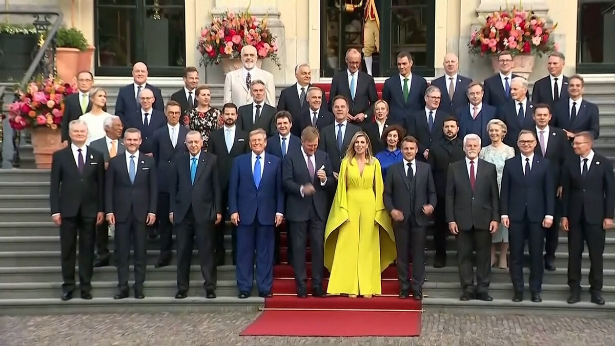 Apertos de mão e sorrisos: o antes e depois da foto de grupo dos reis da Holanda e dos líderes da NATO
