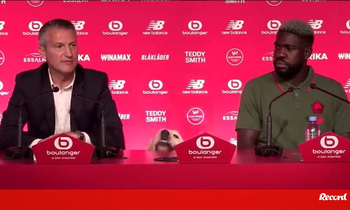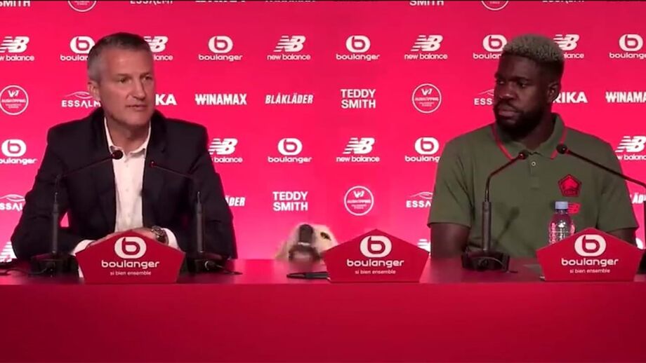 A apresentação de Samuel Umtiti como mais recente reforço do Lille ficou marcada por um momento insólito, quando um cão surgiu entre o diretor e o defesa central...