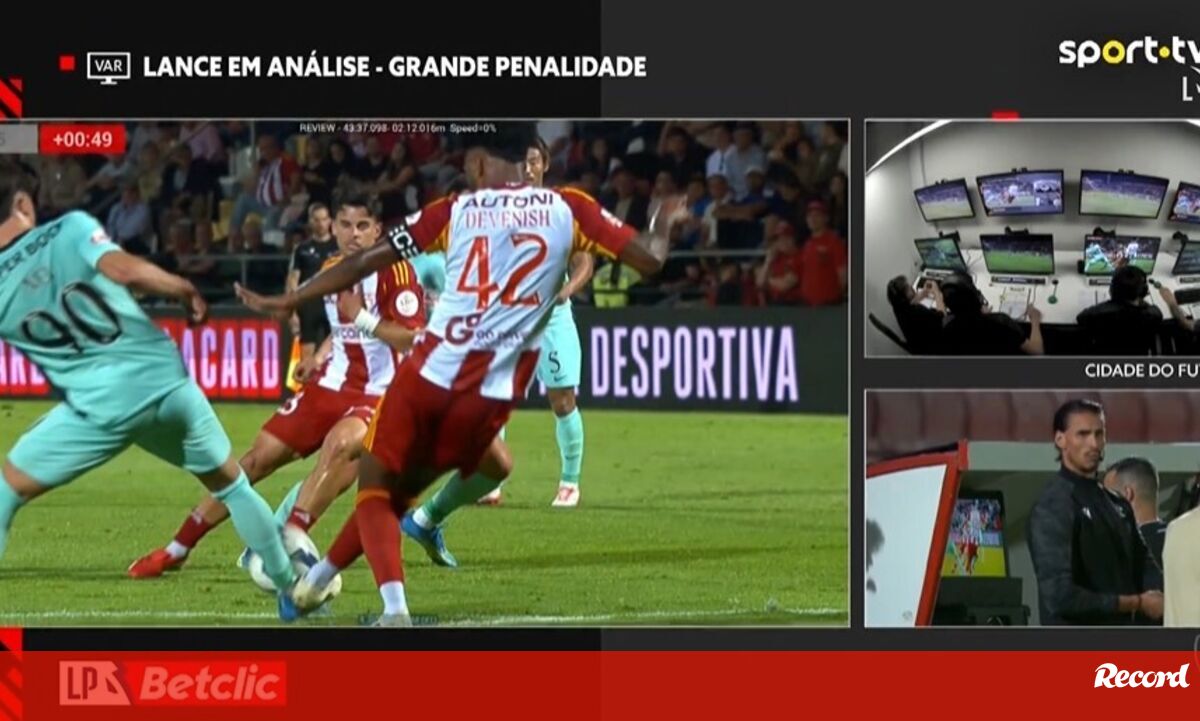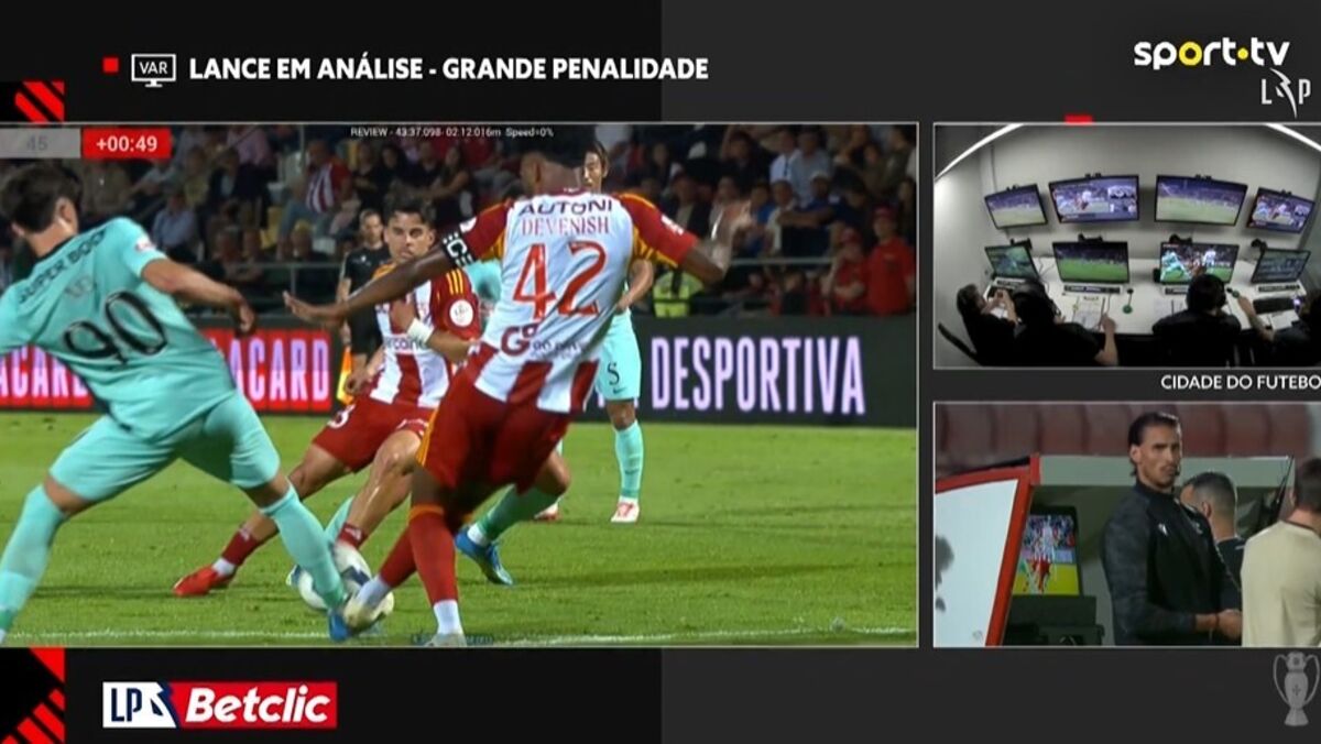 Aos 45'+1 do AVS SAD-Sporting, o árbitro Pedro Ramalho foi alertado pelo VAR para um possível penálti de Devenish sobre Rafael Nel, mas, após consultar as imagens, considerou que não houve infração.