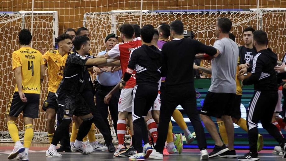 As agressões e a confusão no Sp. Braga-Benfica em futsal: veja as imagens que não passaram na TV