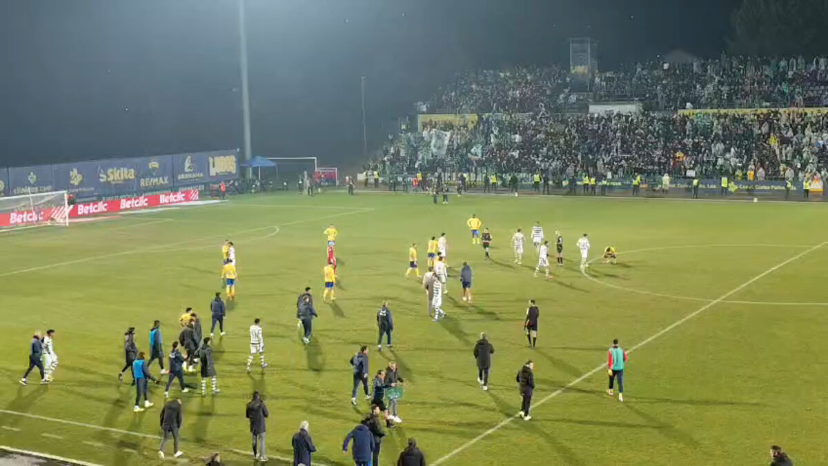 Empurrões e muita tensão: a confusão entre jogadores no final do Arouca-Sporting