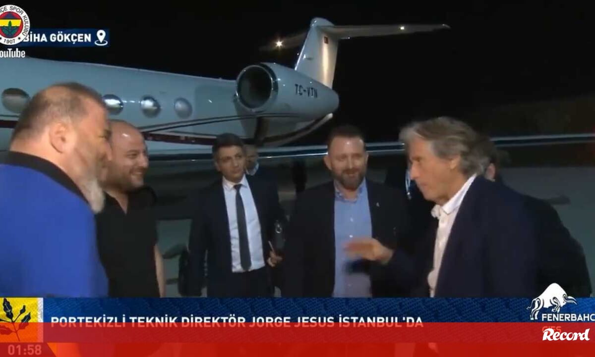 Jorge Jesus já está na Turquia. O avião que transportou o português até Istambul aterrou num dos aeroportos da cidade, o Istanbul Sabiha Gokcen, já perto das duas da manhã. Logo ali conheceu alguns elementos do novo clube, com uma referência a basquetebol (minuto 0:50). Dali o técnico luso seguirá para um outro ponto da cidade num helicóptero fretado pelo Fenerbahçe, o seu próximo clube, pelo qual irá assinar por uma temporada com um salário de 7 milhões de euros/época.