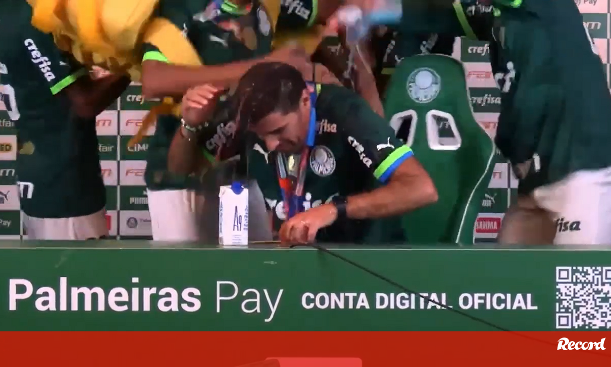 O Palmeiras conquistou, este domingo, o Campeonato Paulista ao bater o Água Santa na 2.ª mão das finais, por 4-0 e, como não podia deixar de ser, Abel Ferreira teve direito a um autêntico 'banho' dado pelos jogadores na conferência de imprensa. "Assim parece que tenho menos cabelo", atirou o treinador português, bem-humorado. (Vídeo: TV Palmeiras)