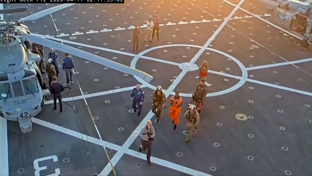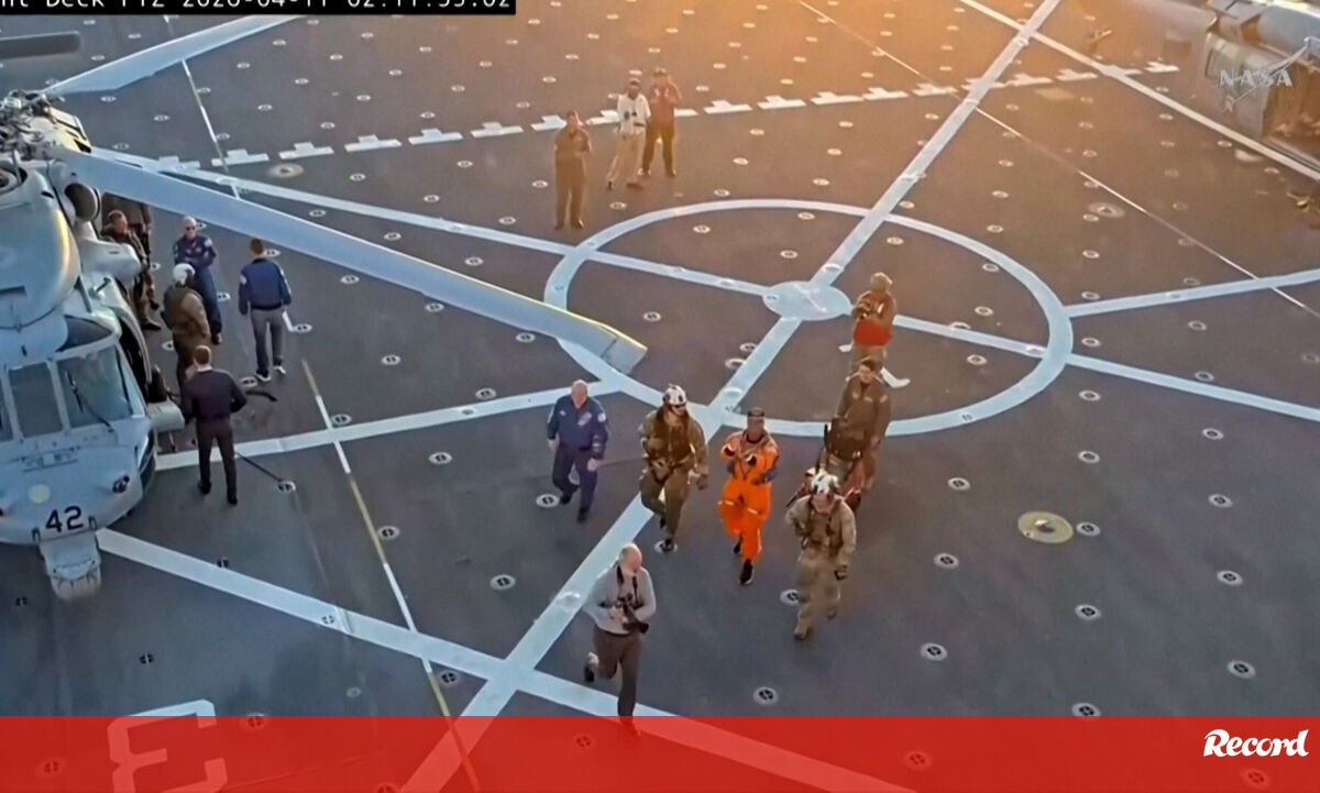 Os astronautas da missão Artemis II foram levados para um navio da Marinha dos EUA após a amaragem da cápsula Orion (rebatizada de Integrity) no Pacífico, na madrugada deste sábado. Os quatro foram submetidos a exames médicos a bordo.