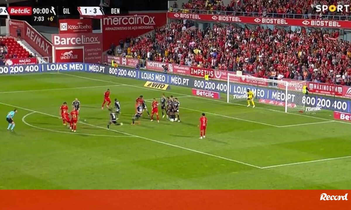 Aos 90'+8 do Gil Vicente-Benfica, Maxime Dominguez fez o 2-3 para os gilistas, de livre direto.