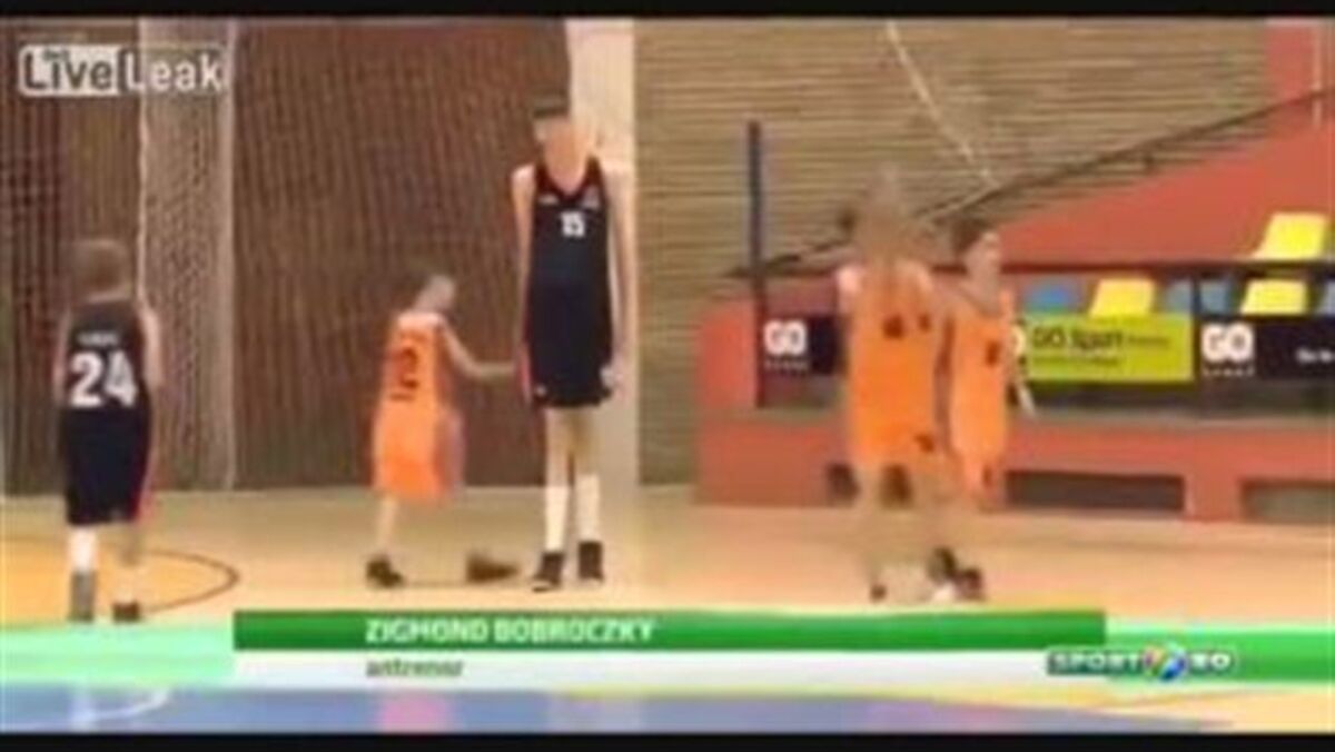 [videopub:http://spvd.i.xl.pt/ClBzzD4UJT4aIHwhBazJ.jpg|http://spvd.v.xl.pt/ClBzzD4UJT4aIHwhBazJ.mp4|500|400]O romeno Robert Bobroczky tem apenas 14 anos, mas caminha a passos largos para se tornar um verdadeiro fenómeno no basquetebol. Tudo porque este jovem, que já é seguido por equipas da NBA, tem já 2,26 metros... A título de curiosidade, Robert Wadlow, o homem mais alto da história, tinha exatamente a mesma altura aos 14 anos.