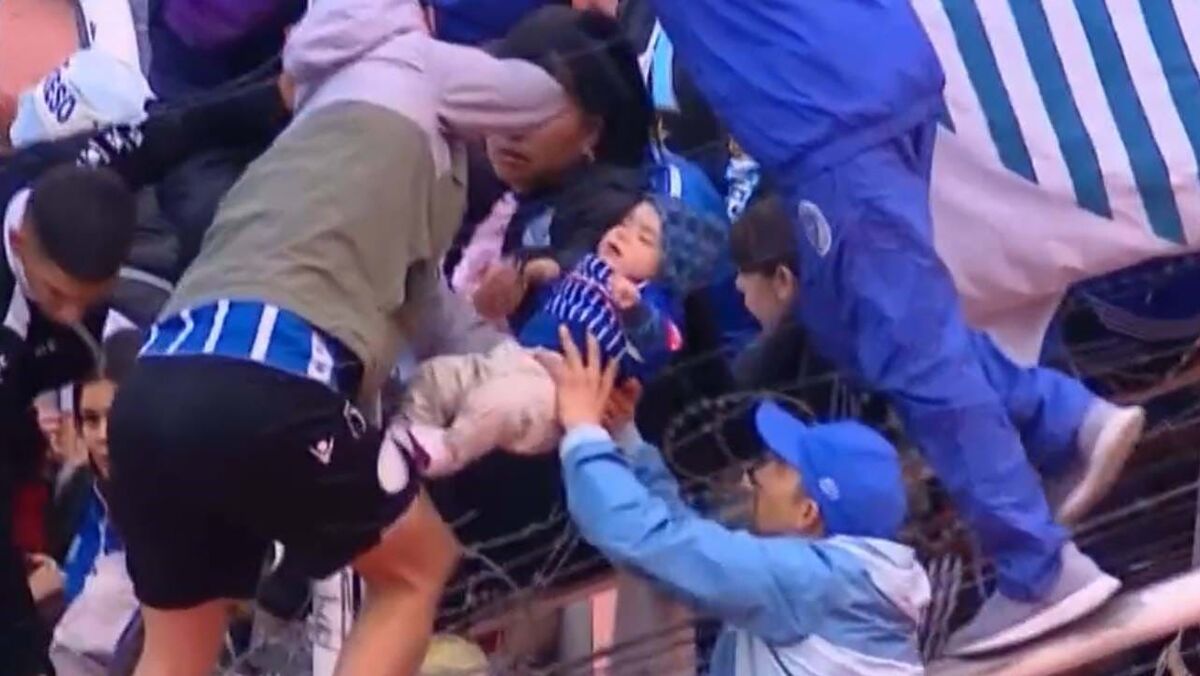 Bebé resgatado por cima de arame farpado em jogo com confrontos na Argentina